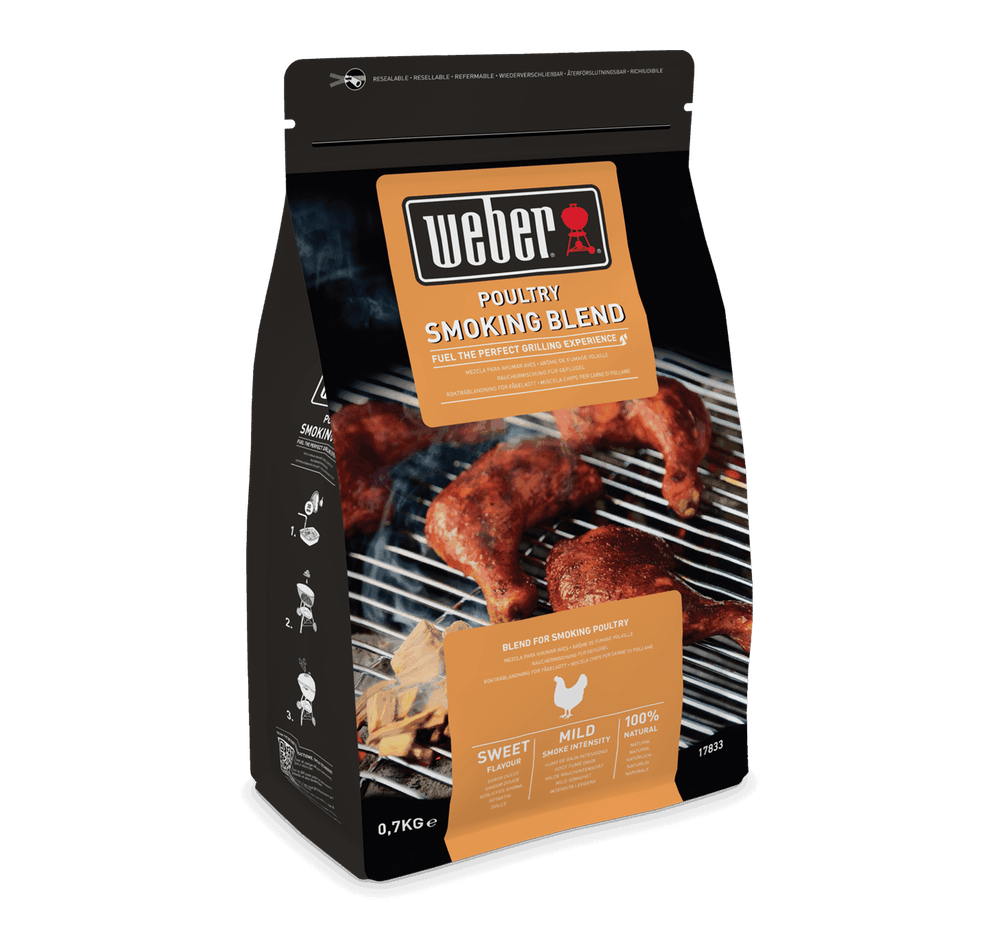 Weber Copeaux de bois de fumage – Volaille 0,7 kg Les copeaux de bois de fumage Weber sont conçus pour fumer vos aliments, réhausser le goût et leur apporter une saveur délicieuse. _Référence: 17833