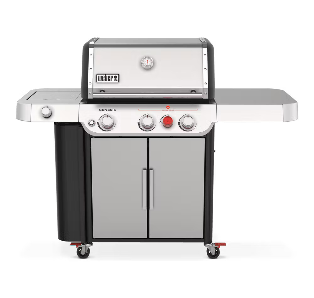 Weber Genesis new S-335 – Barbecue à gaz 3 brûleurs – Brûleur Sear Zone – Réchaud latéral – Zone de saisie extra large – Allumage piézoélectronique – Grille de cuisson GBS en fontre d’acier émaillé – Compatible avec accessoires Crafted – Thermomètre sur couvercle – Barres Flavorizer en acier inoxydable – Grille de réchauffe extensible – Tablette rabattable – Surface de cuisson : 68 x 48 cm -Réf: 35400094