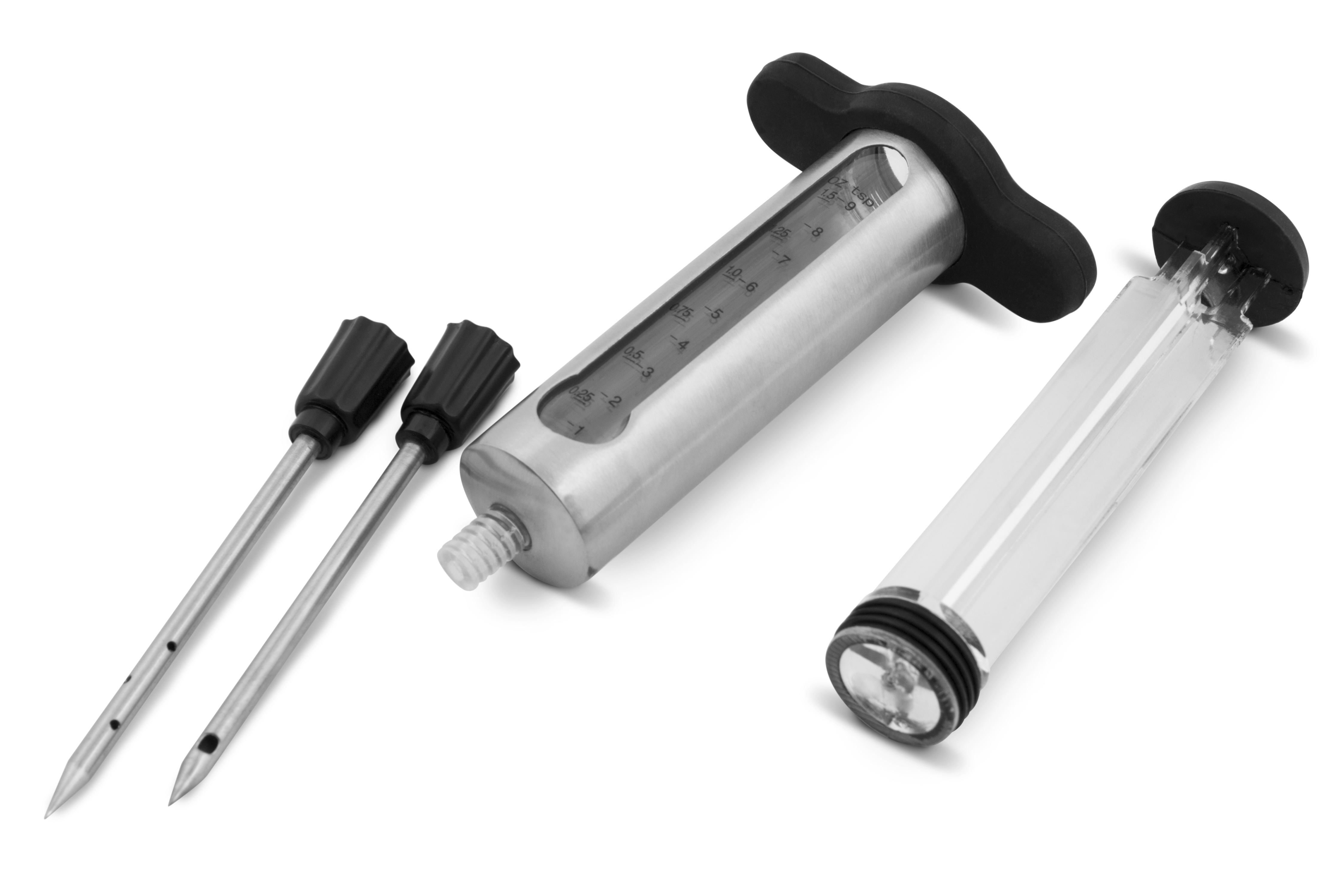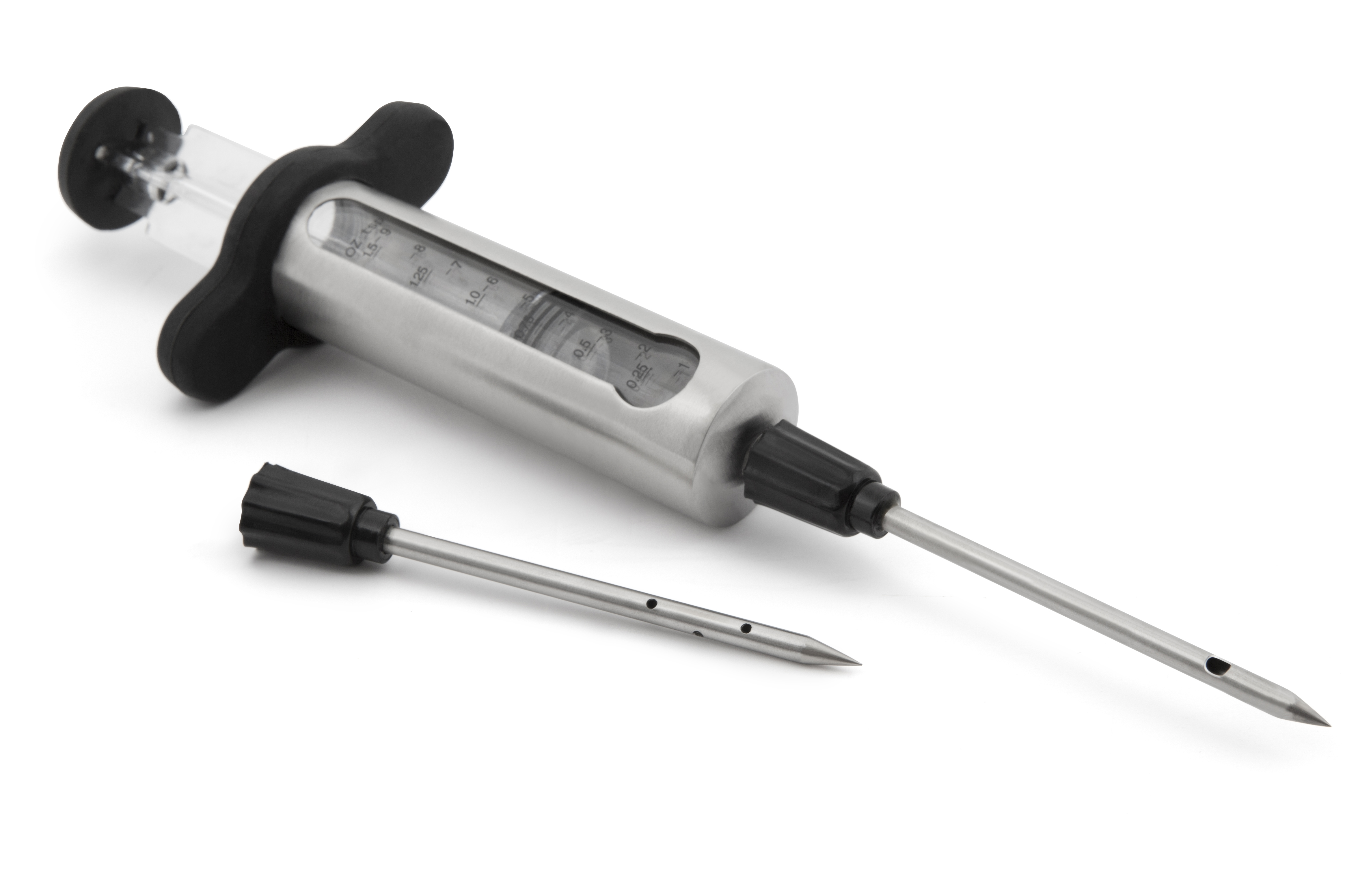 BroilKing Seringue à marinade Grâce à cette seringue à marinade, vous pourrez injecter vos sauces directement au coeur de vos pièces de viande. La viande est ainsi assaisonnée uniformément, en profondeur et elle est plus juteuse. En Acier inox avev 2 aiguilles. – Réf: 61495