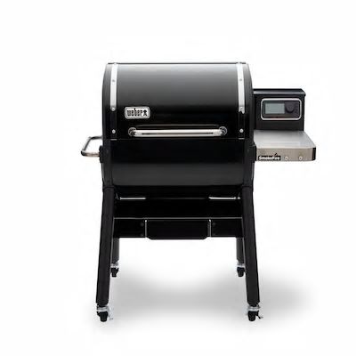 Barbecue SmokeFire EX4 GBS à Pellets · Couvercle et cuve en acier émaillé – Le système de cuisson haute performance permet un rapide préchauffage et un maintient automatique de la température – Conçu pour gérer plusieurs types de cuisson simultanément: low & slow ou saisie – Equipé du Weber Connect il est directement relié à votre smartphone, afin de vous indiquer les étapes de cuisson ·Différentes méthodes de cuissons possibles: directe pour saisir, indirecte pour rôtir et low & slow pour le fumage et la cuisson basse température · Grille de cuisson principale GBS em fonte d’acier émaillé · Grille de cuisson secondaire 25 x 61 cm – Barres Flavorizer: récupération des jus de cuisson pour ajouter une saveur fumée irrésistible · Ecran de contrôle de la température LCD et Wifi · Réservoir à pellets (granulés de bois) avec remplissage automatiques (jusqu’à 9 kg de capacité) – Plateau spécial avec bacs récupérateurs: pour la graisse, les cendres.. – Plan de travail en acier inoxydable avec crochets-ustensiles – 4 roulettes résistantes pour un déplacement facile Noir _Référence: 22511094