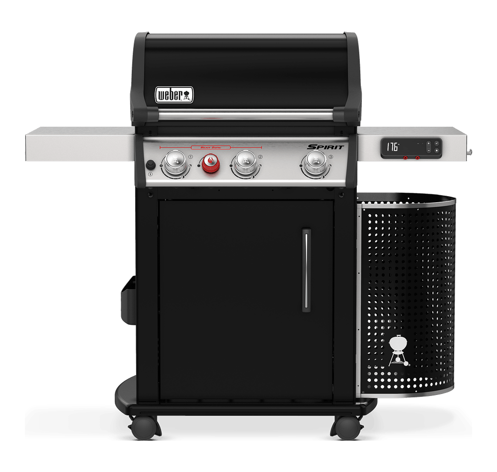 Spirit EPX-335 GBS black – Barbecue à gaz 3 brûleurs – Brûleur Sear station – Allumage piézoélectronique – Réchaud latéral – Grille de cuisson GBS en fontre d’acier émaillé – Barres Flavorizer en acier inoxydable – Grille de réchauffage – Surface de cuisson : 60 x 44 cm _ Référence: 46813794