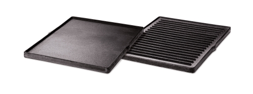 Weber Plancha en fonte réversible Summit série 400/600 La plaque réversible se compose d’une fce lisse et d’une face nervurée. Remplace la grille du barbecue. _Référence: 7404